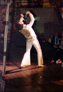 In front of 17,000 Hoosiers at the late lamented Market Square Arena, the show began with, of all things, Also Sprach Zarathustra, verging into See See Rider. The setlist included old favorites like Jailhouse Rock, Little Sister, a Don't Be Cruel/Teddy Bear medley, Hound Dog, Sherill Nielsen singing O Sole Mio leading into its melody-mate, It's Now Or Never, and closing with Can't Help Falling In Love With You. A local review, negative as vultures usually are, said: