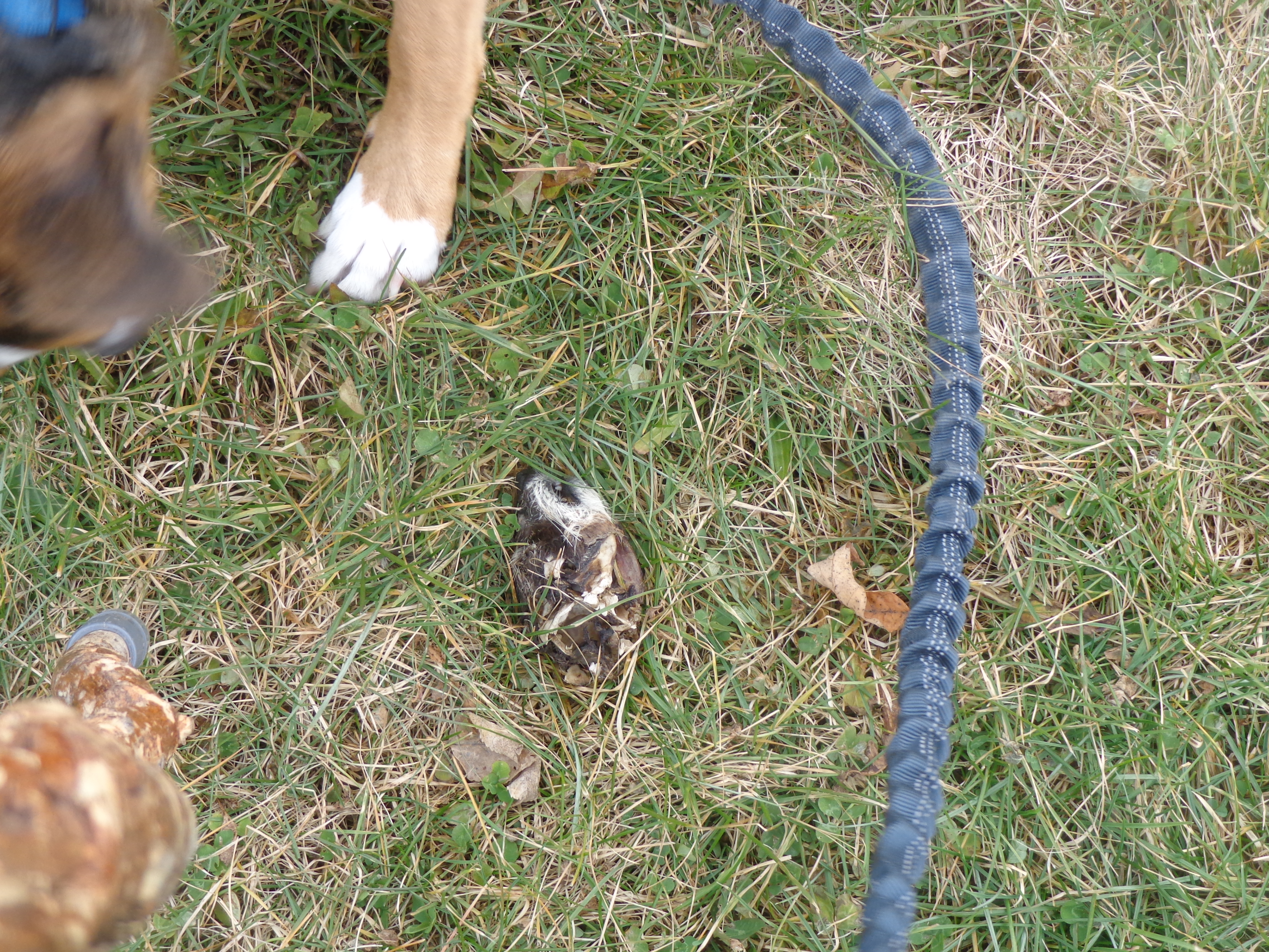 This year, I ended at 700 posts the institution known as Time Machine with our final Halloween Bash. Hopefully that will give me more time and impetus to do more picture posts. That way I can give you more interesting things like this: "On our walk the other day, I got more proof that Misty is mixed with coonhound. The same dog that walked past a reasonably-fresh deer carcass without a backwards glance three times, stopped to sniff at something small in the grass on our way to the woods. When I looked, I found she had sniffed out...