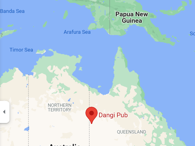 Somewhere near the Urandangi Aerodrome, near the border between Queensland Australia and the Northern Territory, sits the Dangi Pub. The high was recorded at the aerodrome, but if it's going to be 113.2 F (45.1C), I'm darn sure gonna be at the pub! Lets get a review of the establishment...