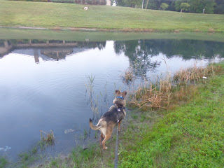| At this point, the frogs at the Alumni Pond are teasing Misty, jumping right in front of her, making sure she sees them |